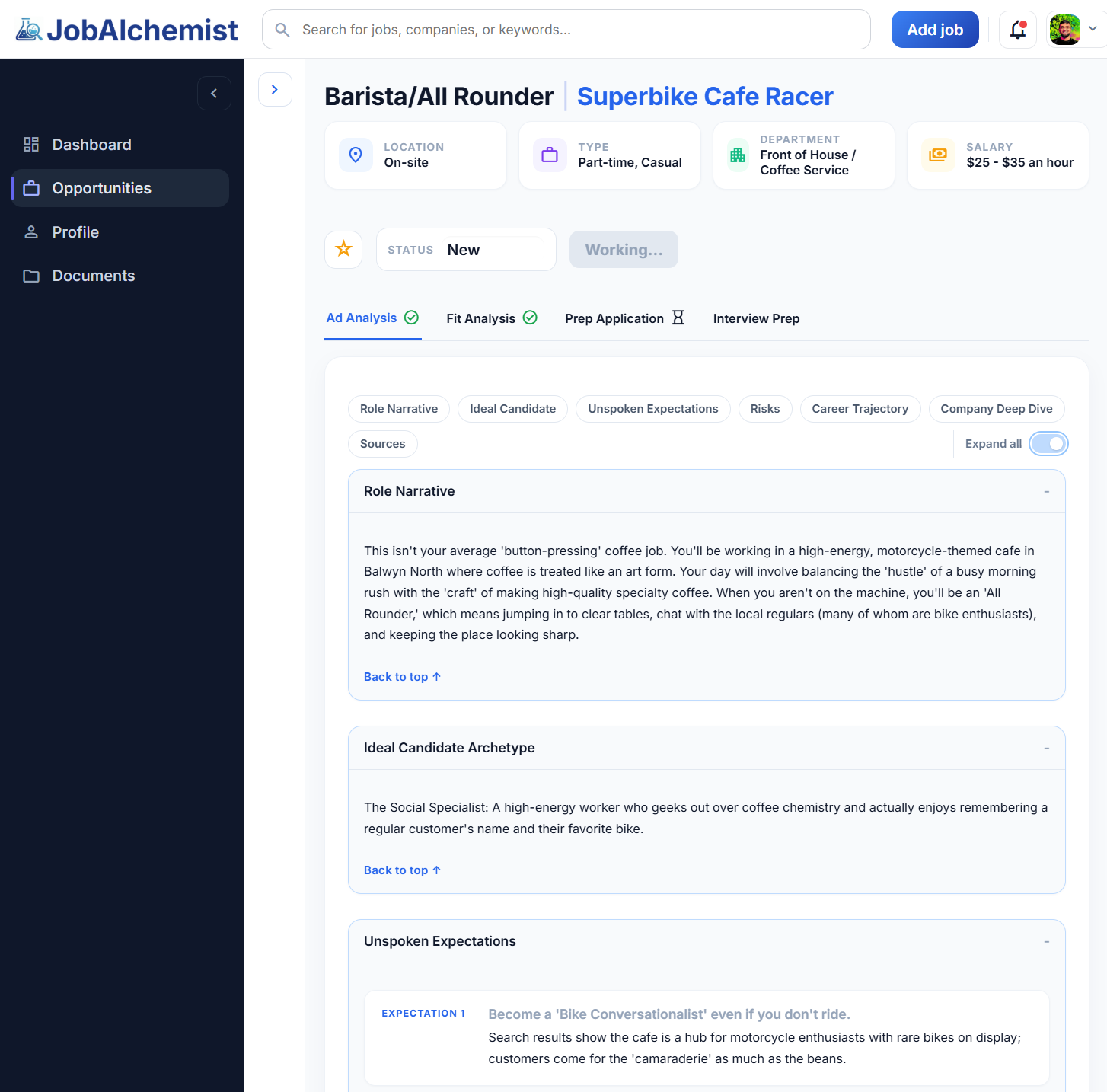 Job ads are written for experienced people and can feel confusing. JobAlchemist translates them into plain language so you actually know what you're applying for.